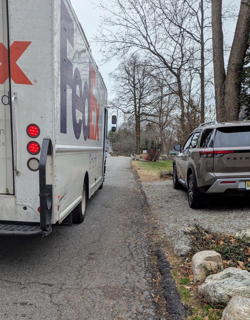 - Three incidents where three FedEx trucks perform loading of packages on residential streets.